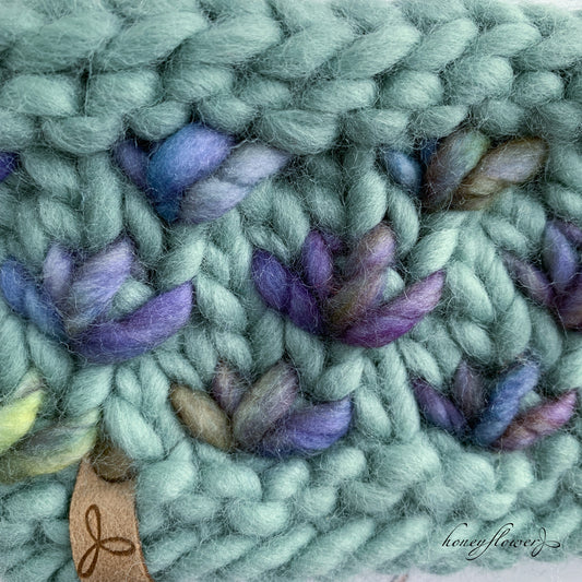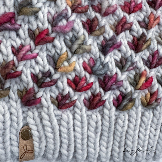 Lotus Flower beanie with pom | wildflower and fog | 100% merino wool