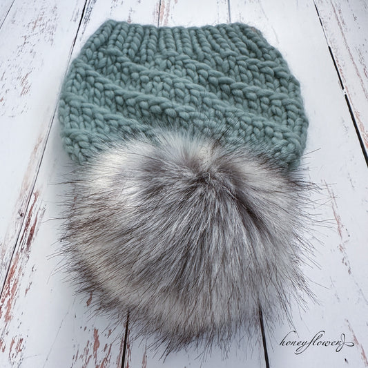 Whirlstream beanie with pom | sage green | 100% merino wool